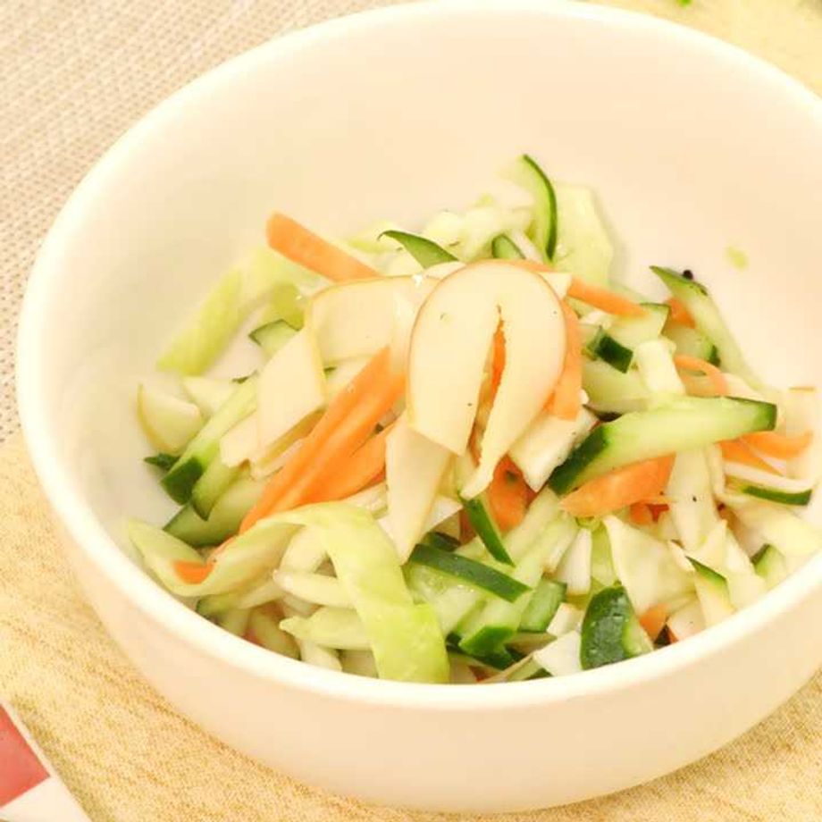 いかの燻製を使ったキャベツのさっぱりサラダ♪ 野菜のシャキシャキ感といかくんのくにくにした食感がくせになる♪ ちょっとしたおつまみにもどうぞ!