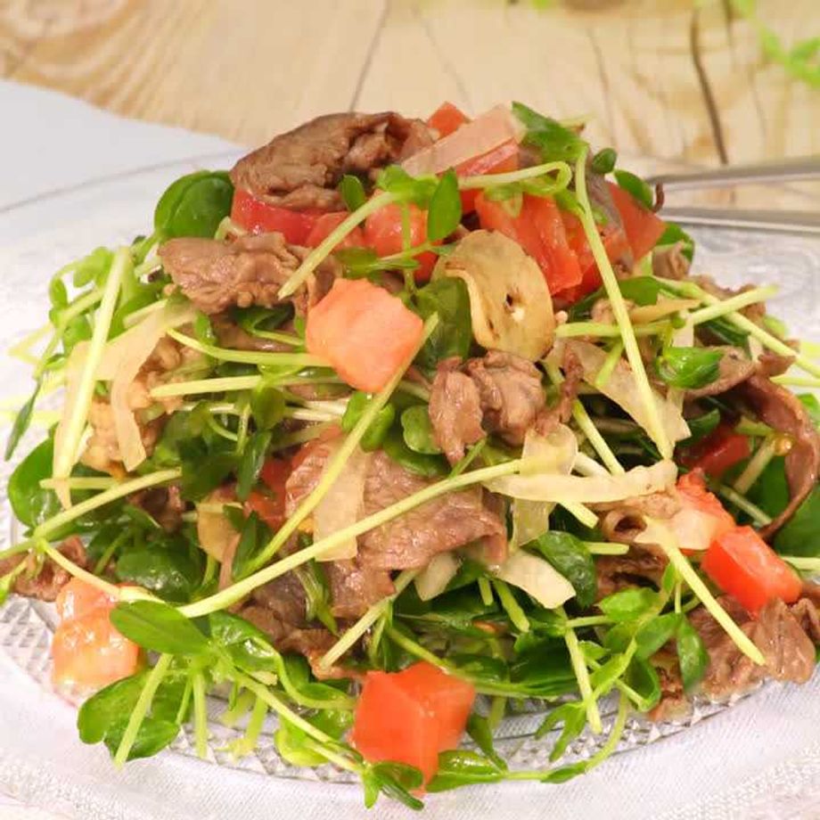 東海テレビ「スイッチ!」で紹介! お肉を加えることで、サラダが主菜に!濃いめに味付けした牛肉が生野菜との相性ぴったり♪是非お試し下さい。