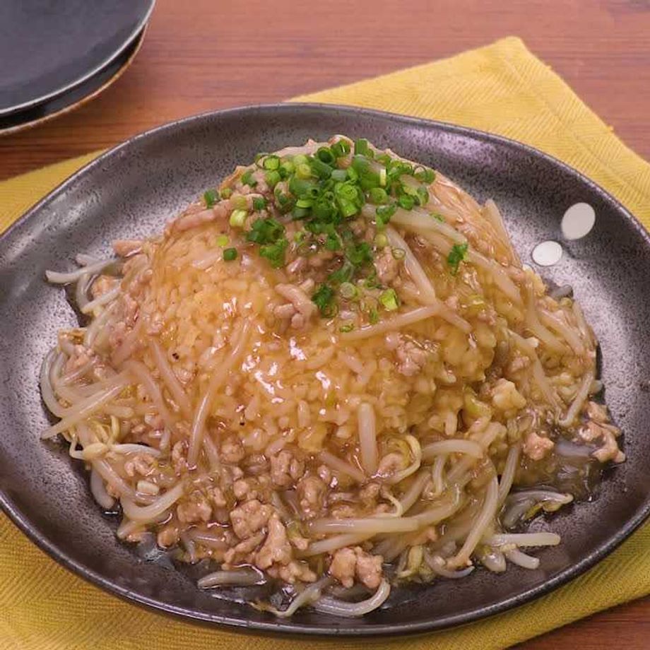 - もやしの代わりに豆苗使いました。ひき肉も増量して。 炒飯が見えなくなるほど、あんかけいっぱ〜い♡ とっても美味しかったです! かなりボリューミーだったので、次はひき肉増量しないでリピします😁