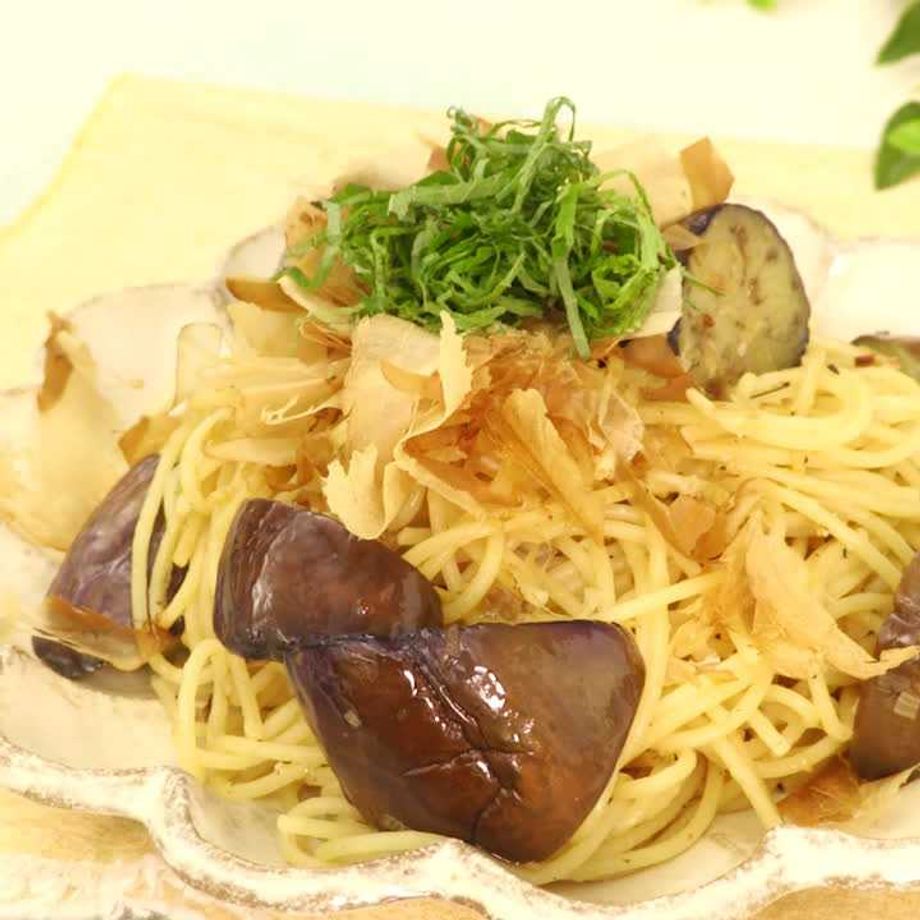 大葉となすの和風ねぎソースパスタ