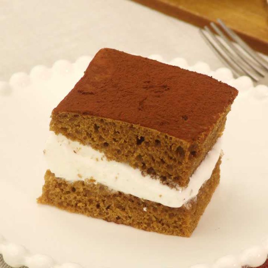 マシュマロをサンドして予熱で溶かした四角いケーキ♪ 見た目も可愛くふわふわのマシュマロクリームが絶妙! ほろ苦コーヒー生地にもよく合います!