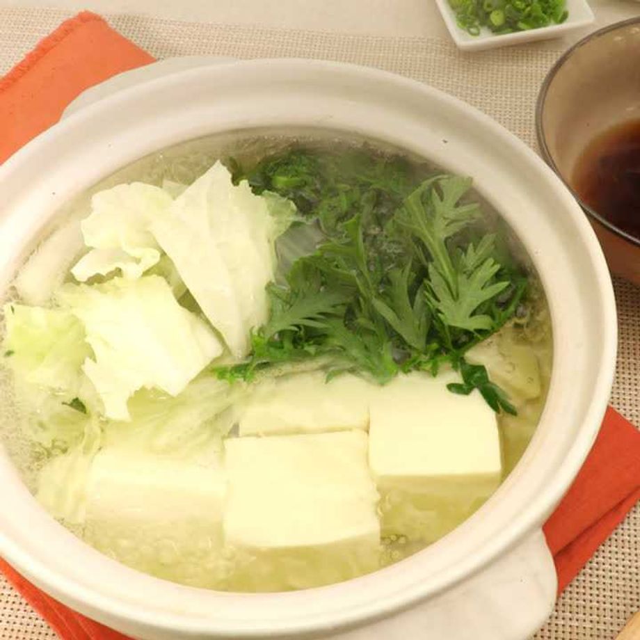 あったかくておいしい湯豆腐レシピをご紹介♪白菜の甘み、春菊の香りが上品なおいしさに仕上げます♪かつお節としょうゆ、みりんで作ったたれで出来立ての湯豆腐をお召し上がりください♪