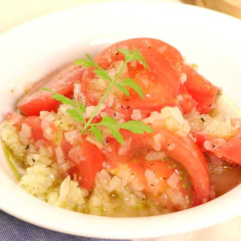 簡単で、味付けもニンニクとオリーブオイルの味が合わさって美味しかったです! 食べやすいように、トマトは16等分に切りました! 玉ねぎも辛味があるのが苦手なので、30分よりも少し長めに水につけたら辛味もなかったです!k