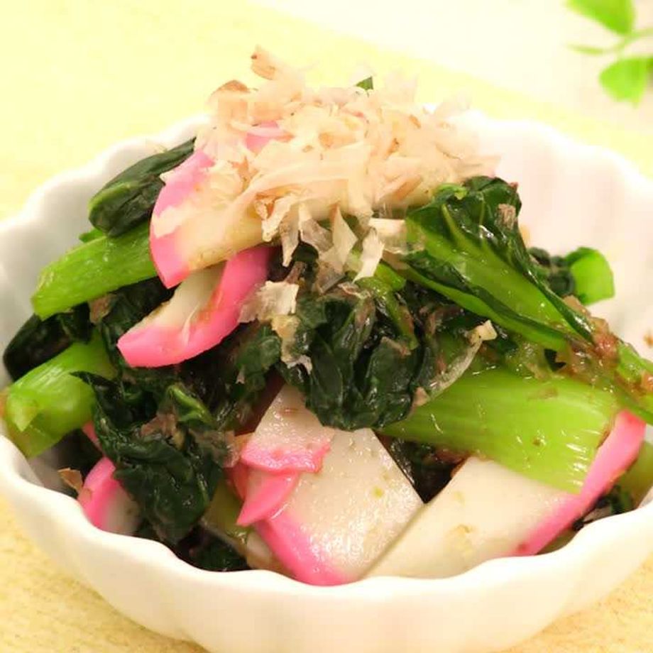 このレシピの為にかまぼこを買おうとしたら、意外と高くてカニかまに変更しました!柚子胡椒美味しいです!小松菜1袋だったので3分半レンチンで調味料1,5倍位で美味しかったです♪お浸しや胡麻和えに飽きた時丁度いいです♪凛子