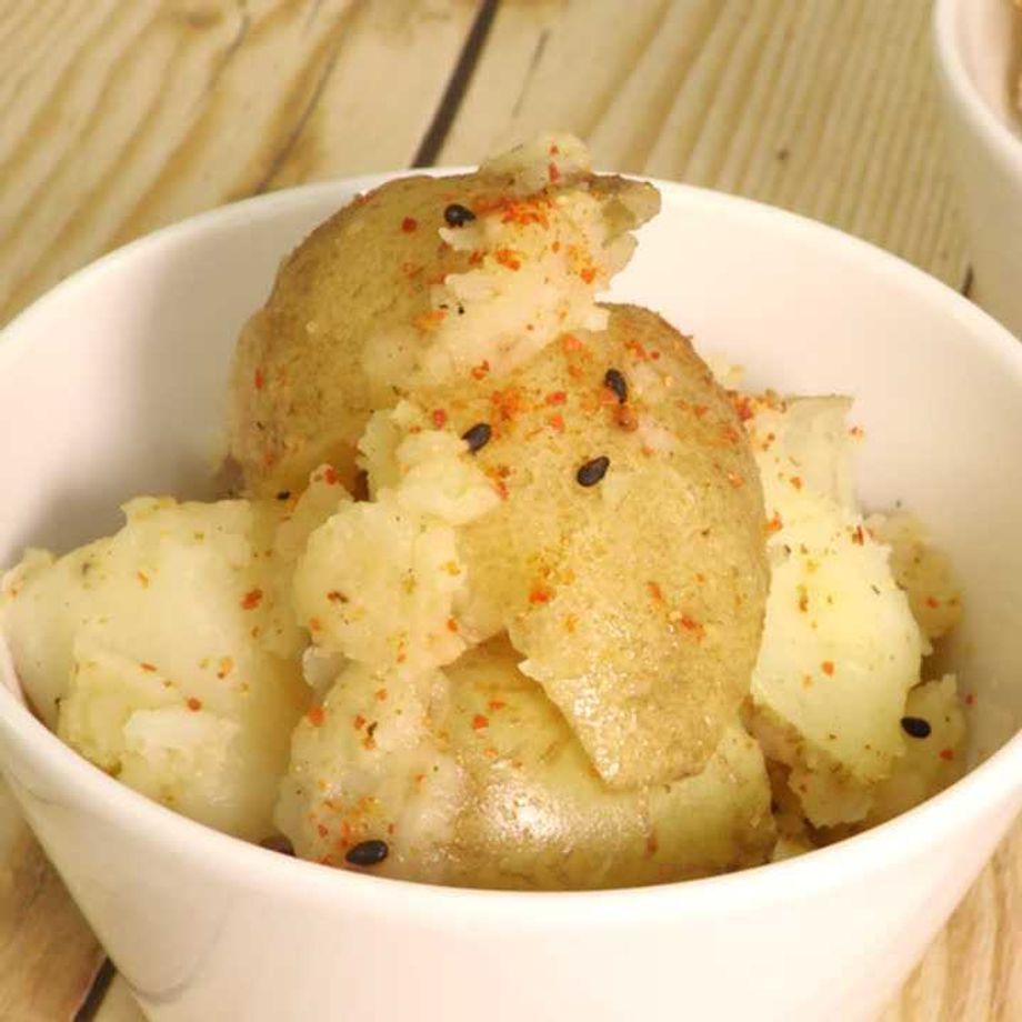 ほくほくとした皮付きのじゃがいもに チーズのコクと唐辛子の辛味をプラスした 新たな味わいのポテトサラダです。