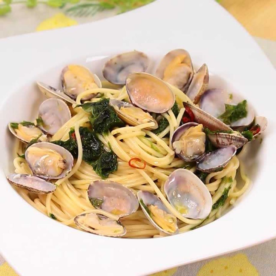 磯の香りが広がる和風パスタ♪ あおさとあさりの豊かな風味を堪能できる一品。 ピリ辛味で食欲もそそります!