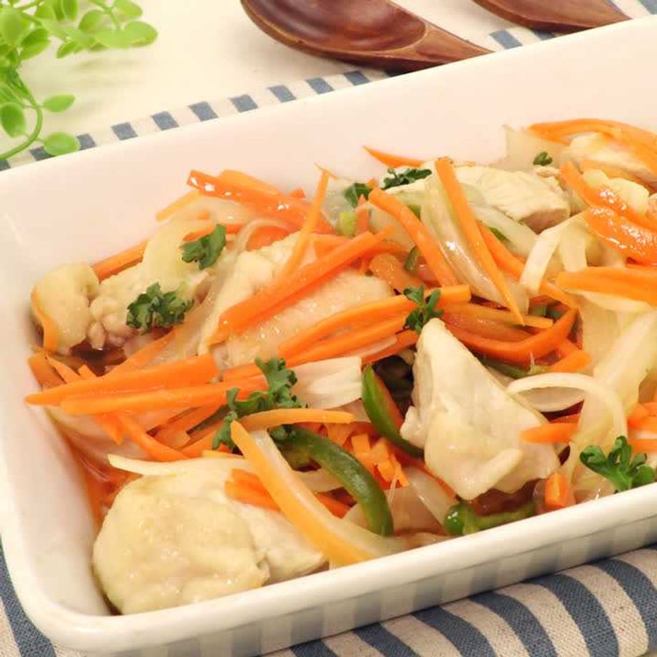 鶏むね肉は片栗粉をまぶす一手間で柔らかに♪野菜もたくさん食べられるさっぱり副菜!暑くなる季節に食べたくなるレシピです♪