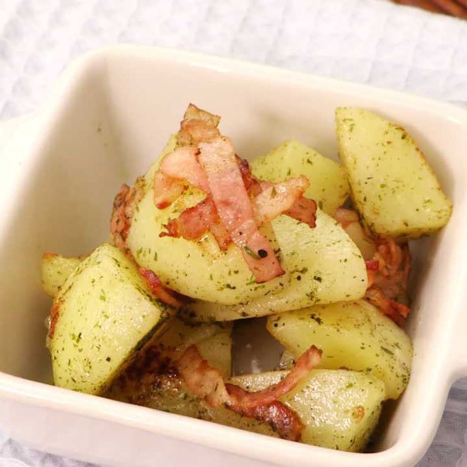 フライパンにバターを入れて、じゃがいも、ベーコンを加えて3~4分炒める