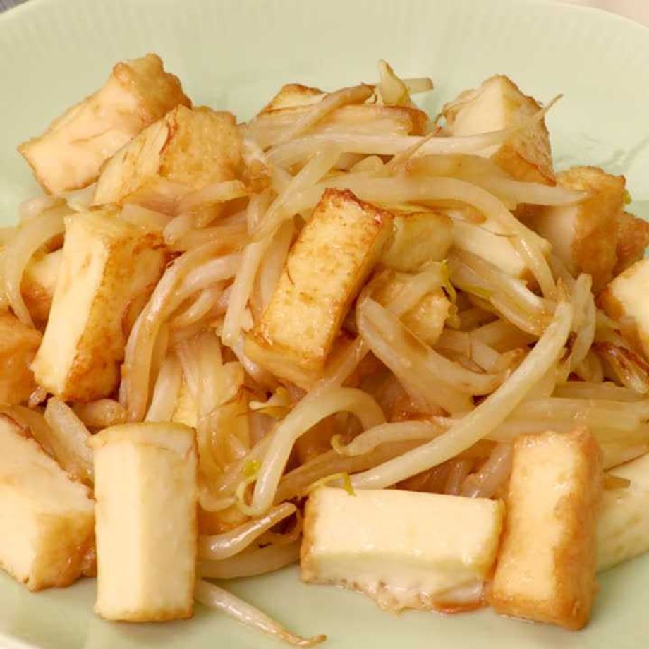 厚揚げは食べやすい大きさに切る。フライパンにサラダ油を入れて熱し、厚揚げ、もやしを入れもやしがしんなりするまで炒める。