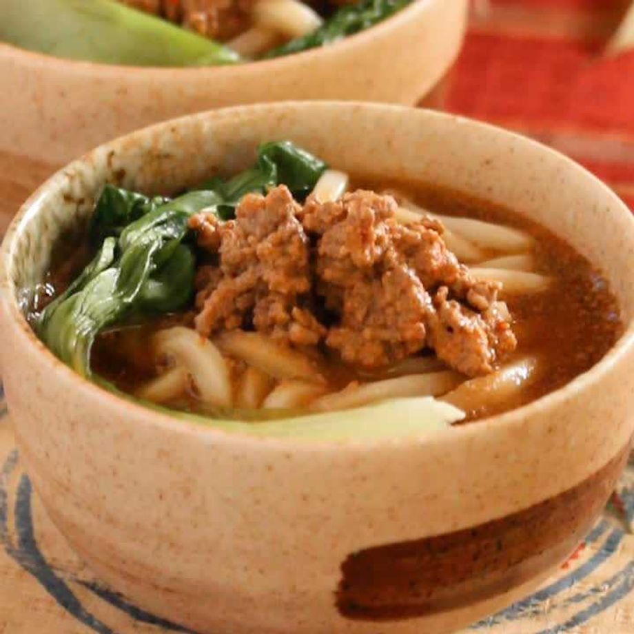 担々麺をうどんで! ひき肉のうまみとゴマの香りが絶品♪ 濃厚なコクとピリ辛が食欲をそそります!