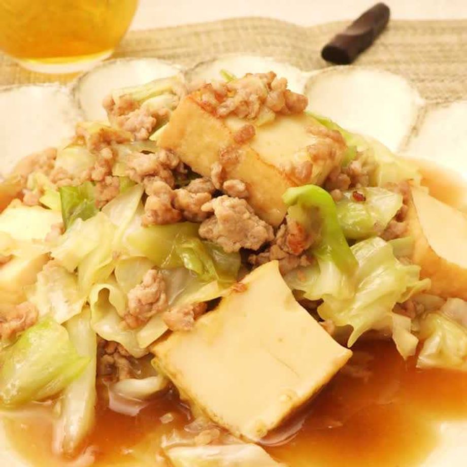 キャベツが余った時にピッタリのレシピをご紹介! シャキシャキなキャベツと柔らかい厚揚げの食感がたまらない! にんにくの香りでご飯もすすむ一品です♪