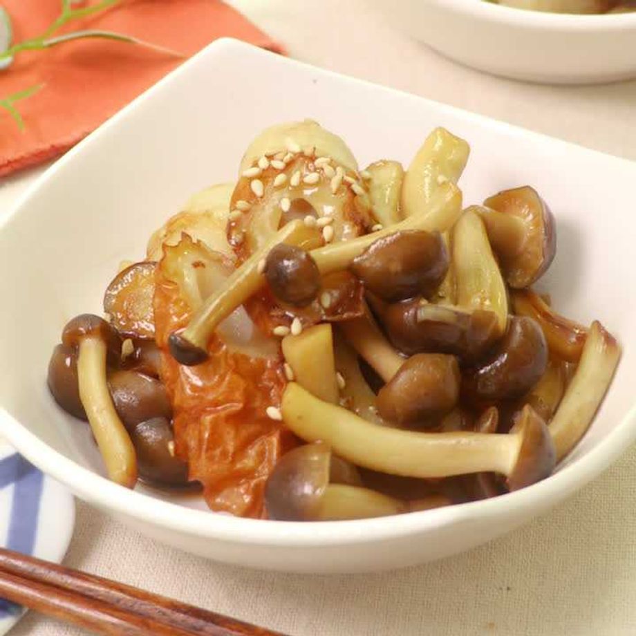 - ちょうど冷蔵庫にちくわとしめじがあったので、作りました。他の方のコメントにもありましたが、レシピ通りの調味料では塩辛くなりそうだったので、全部大さじ2分の1にしたところ、ちょうどいい味付けになり、美味しくいただきました。あとは一品欲しい時にちょうどいいと思います。