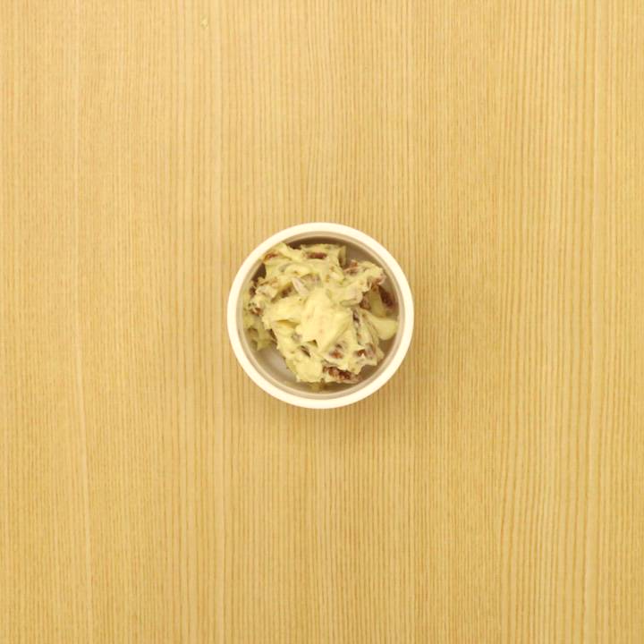 バターを室温に戻しておく。ドライいちじくを小さく刻んで容器に入れ、ブランデーを加えてよく混ぜ合わせる。