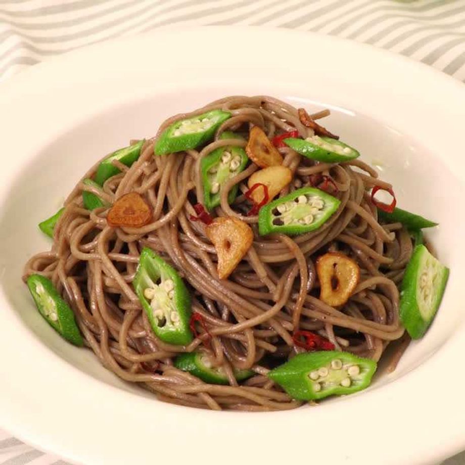 オクラの蕎麦ペペロンチーノ