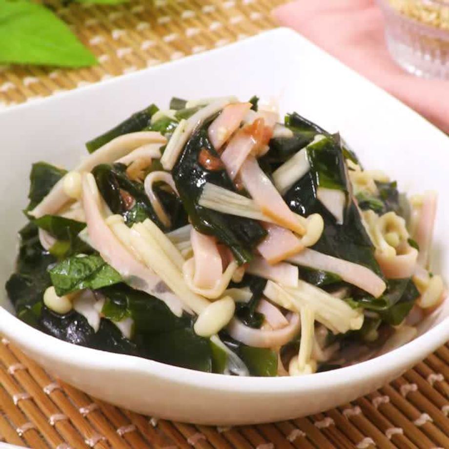 ハムとわかめの梅肉和え