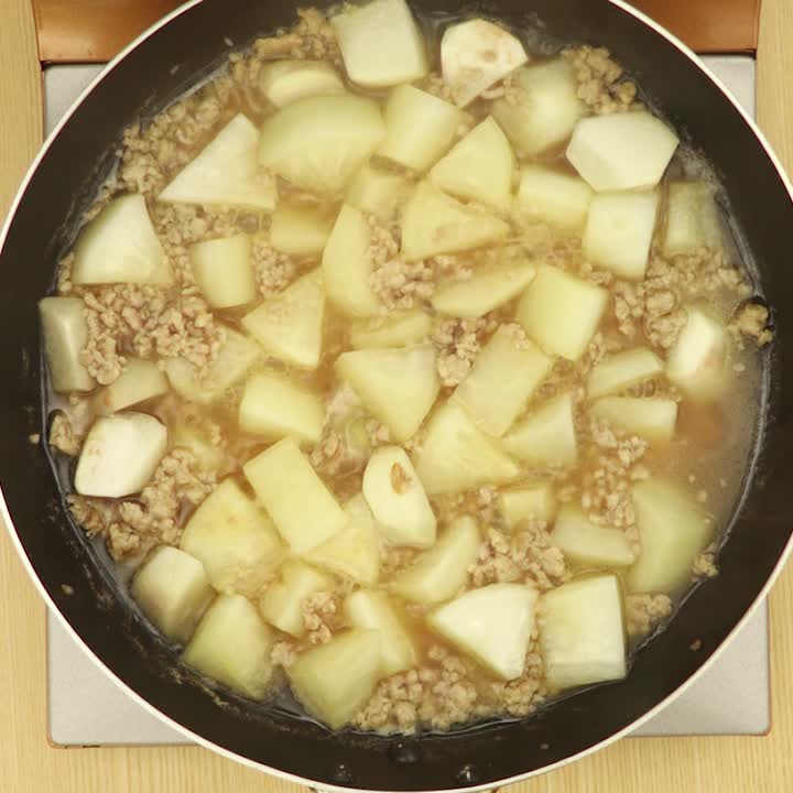 里芋なかったので大根だけで、豚ひき肉で作りました! 美味しかったのでまた里芋入れて作りたいです!