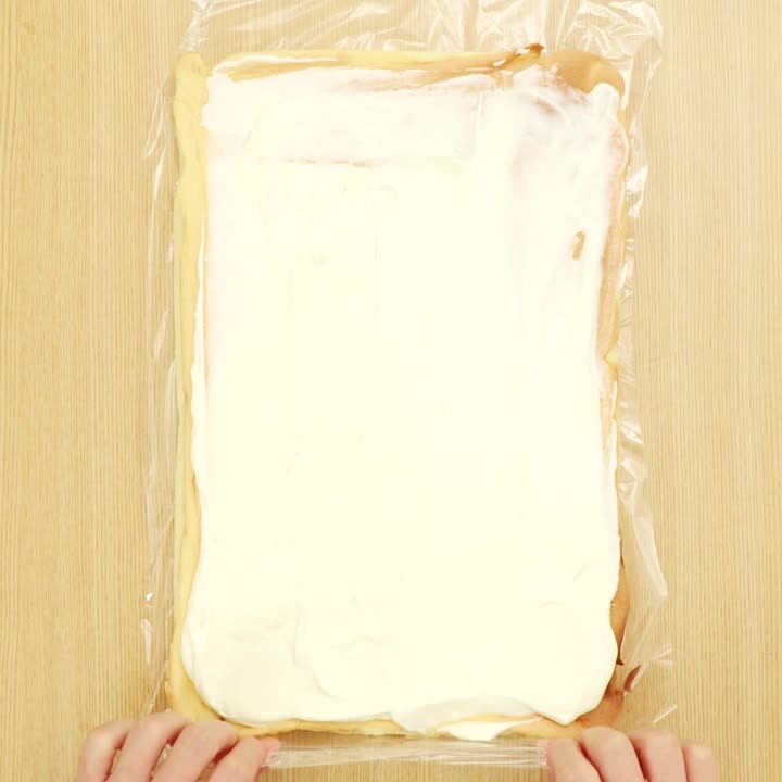 手前から巻いてラップに包み、2時間冷蔵庫で冷やして完成。