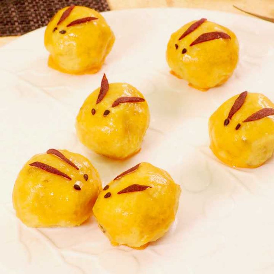 一口サイズのスイートポテトにうさぎの顔をのせたかわいいスイーツ♪お月見のお供におすすめです!