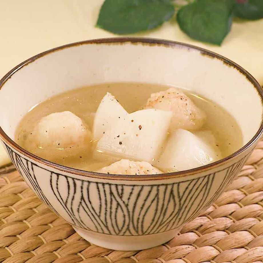 大きめの大根とえび団子で主役スープ!大根にえびの旨味が染み込んでいてほっこり胃にも優しい♪片栗粉でとろみをつけてもオススメです♪