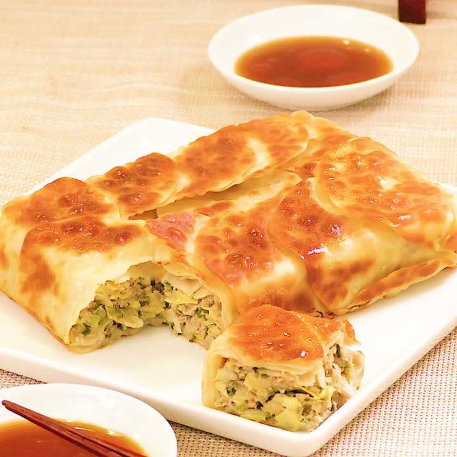 器に盛り、好みの大きさに切り分け、しょうゆ、酢、ラー油を添える。