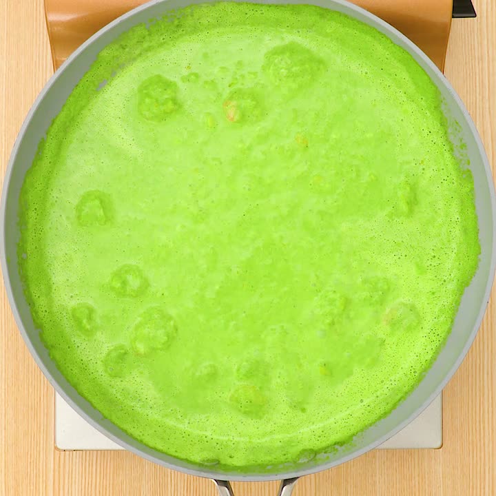 フライパンに撹拌したソースを入れて熱し、煮立ったらむきえびを加えて白っぽく色が変わるまで中火で煮る。