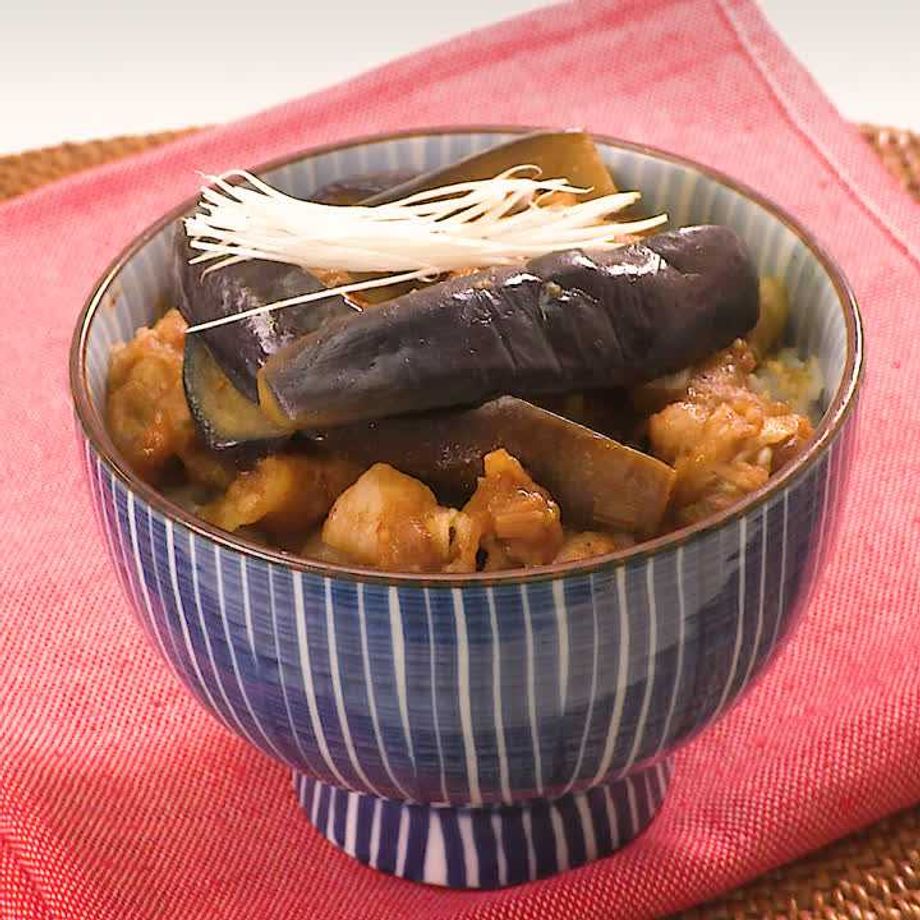 なすを戻し入れ、☆を加えて混ぜ、強火で煮立たせながらとろみをつける。器にあたたかいごはんを盛り、具材をかけ、白髪ねぎをちらす。