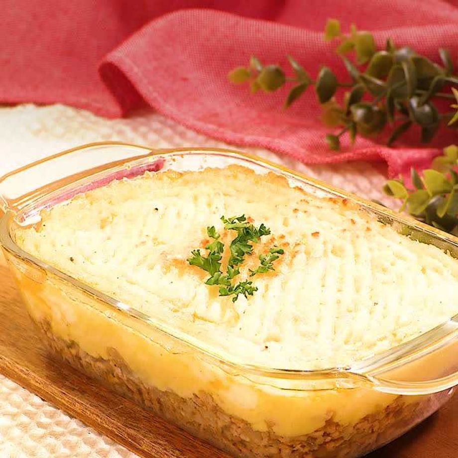 シェパーズパイ風♪マッシュポテトに付けた模様が可愛い♪ コーンクリーム缶で簡単マイルドな仕上がりに! おもてなしにもおすすめな一品です♪