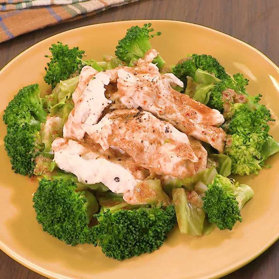 ブロッコリーがなかったのでキャベツのみを蒸しました。 鶏むねは4分を2回レンチンしました。 豆板醤は子供がいるので入れてません。 ヘルシーで美味しかったです。