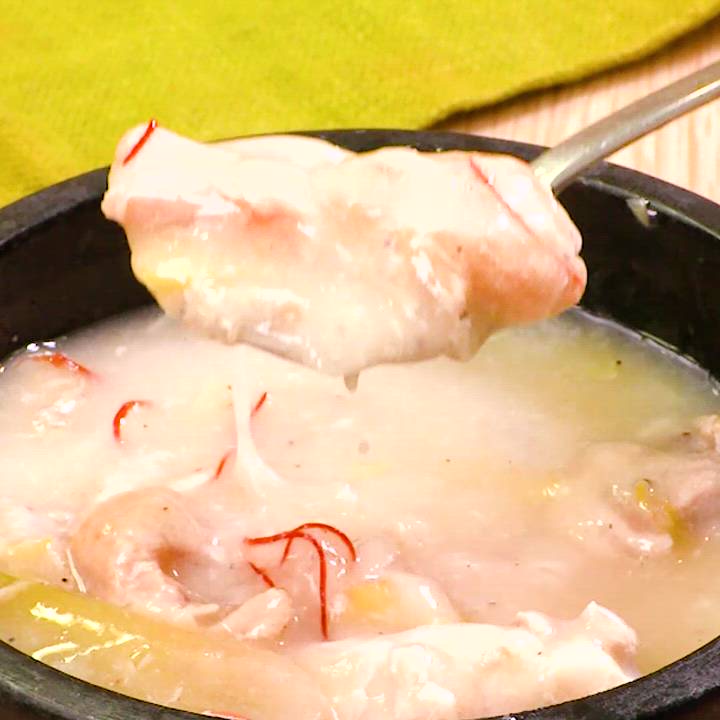 炊飯器に入れて炊飯するだけでお肉ほろほろ! お餅の効果でスープもとろっと食べ応え抜群♪ 鶏肉のダシが染み出て美味しい一品です。