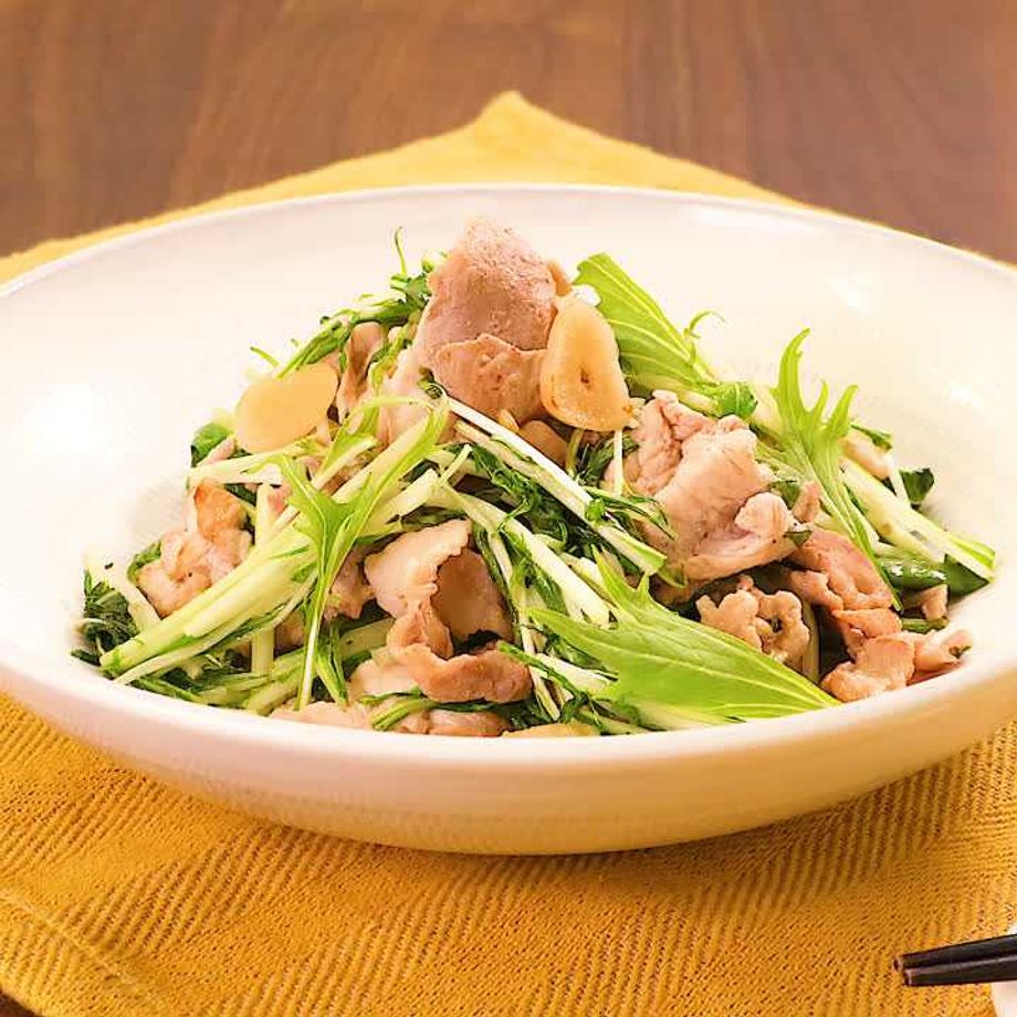 - 3 - 肉に火が通ったら、水菜、めんつゆ、塩こしょうを加えて1分程炒める。