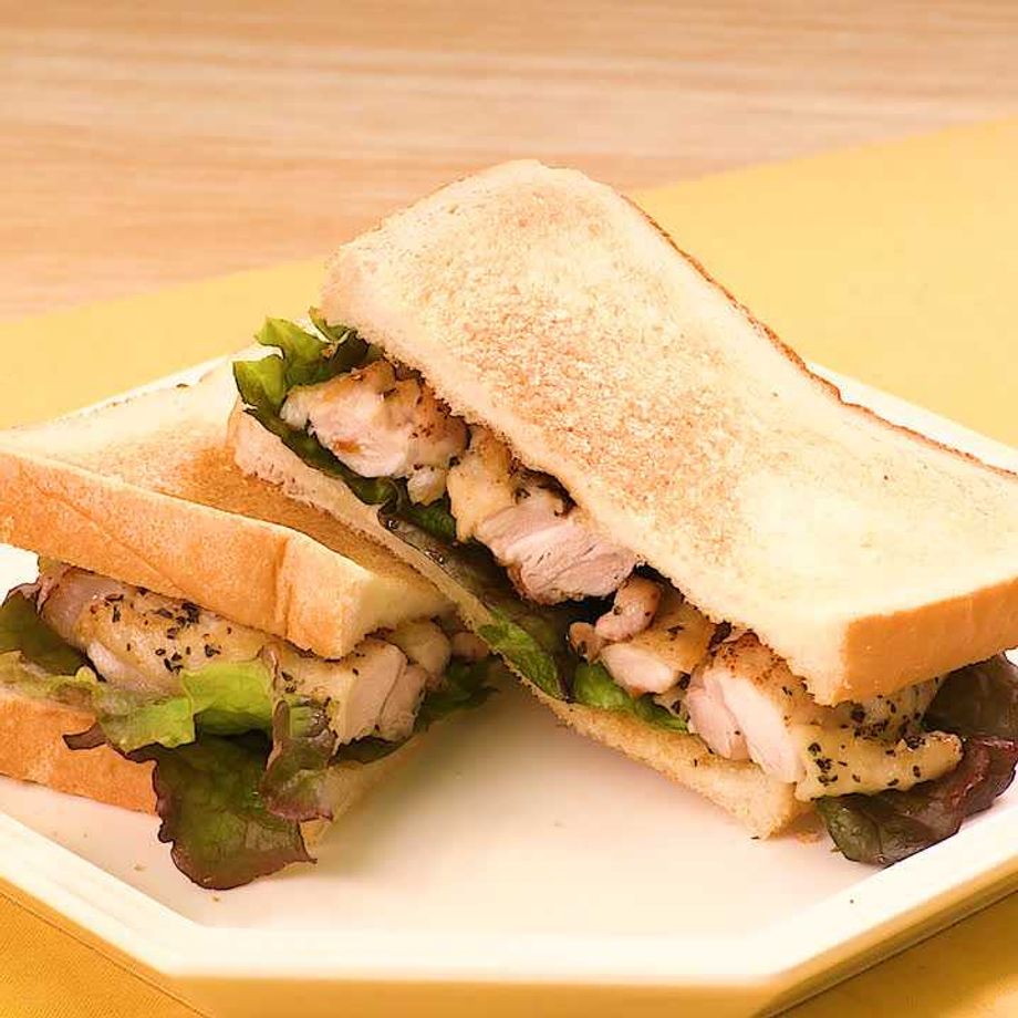 バジルの風味が食欲そそる♪ 皮までパリパリ!ジューシーなお肉がたまらない! 少しおしゃれにピクニックに行きたくなるサンドイッチ♪