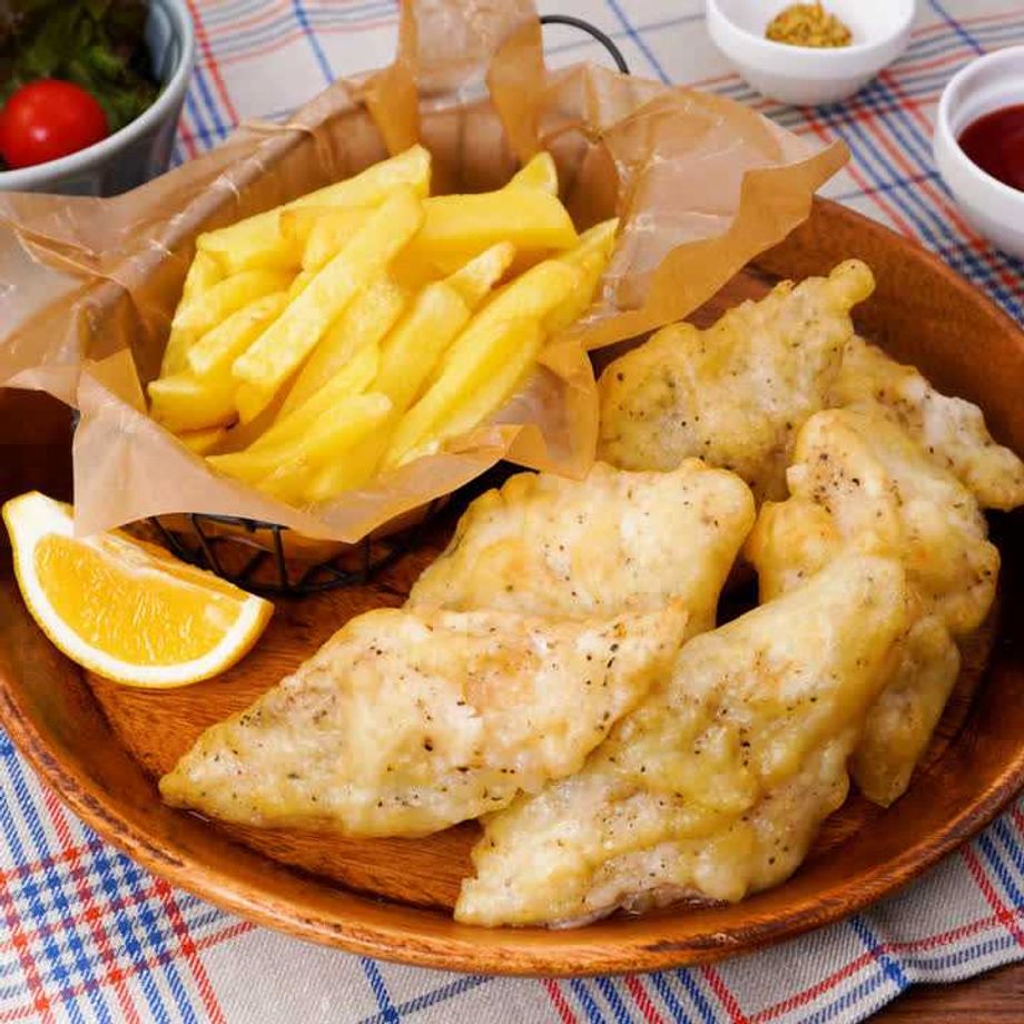 本場の味を再現!フィッシュアンドチップスとは、イギリスで親しまれている白身魚とじゃがいものフライ。ふんわりサクサクのタラとカリッと揚がったポテトが抜群のおいしさです♪コツはタラを揚げる衣にベーキングパウダーを加えること。卵がなくても衣がふわっとします。水の代わりに炭酸水やビールなどを入れてもカリッとした衣が楽しめます。その場合は揚げる直前に入れてください。味付けはシンプルにケチャップやマスタードで。お好みで本場で人気のモルトビネガーをかける食べ方もおすすめ♪パーティーシーンでも大活躍まちがいなしです。
