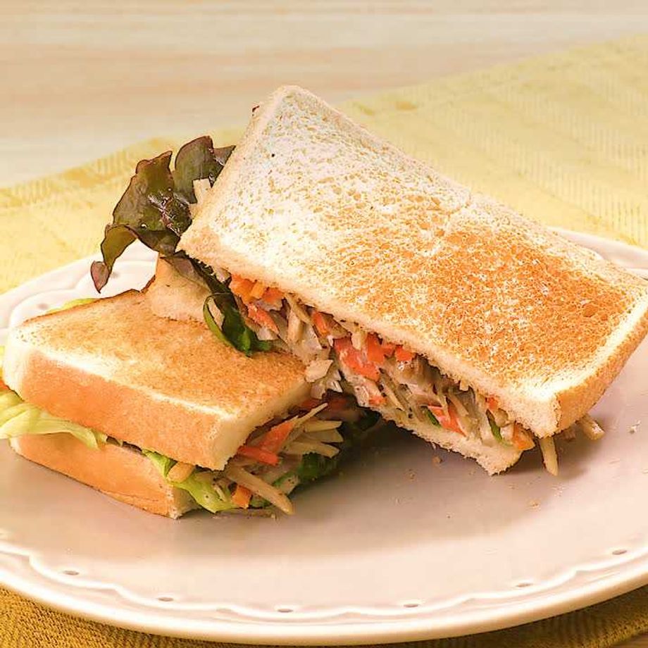 いつものきんぴらごぼうをパンに挟んでさらに美味しく♪ 食べ応えもあり、満足する一品です♪ 簡単ランチに食べてみてはいかがでしょうか?