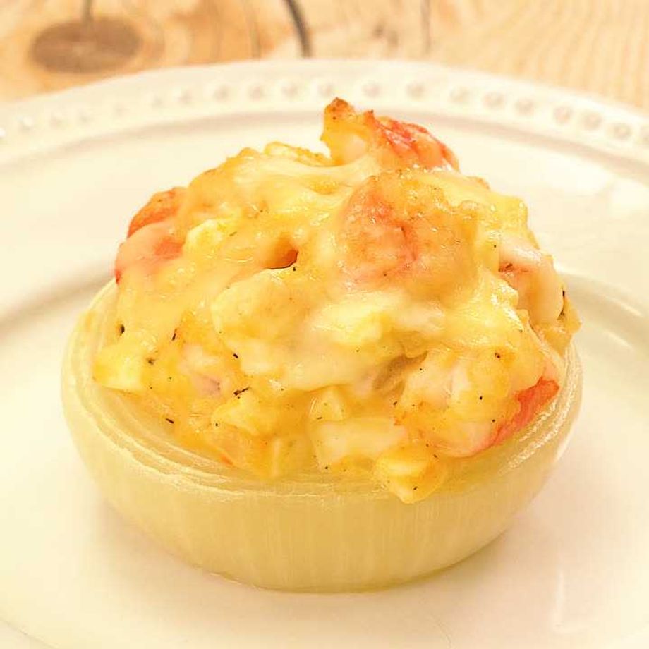 玉ねぎにタルタルソースを入れる。オーブントースターの天板にアルミホイルを敷いてカップを並べ入れ、温めたオーブントースターで焼き色がつくまで7〜8分焼く。