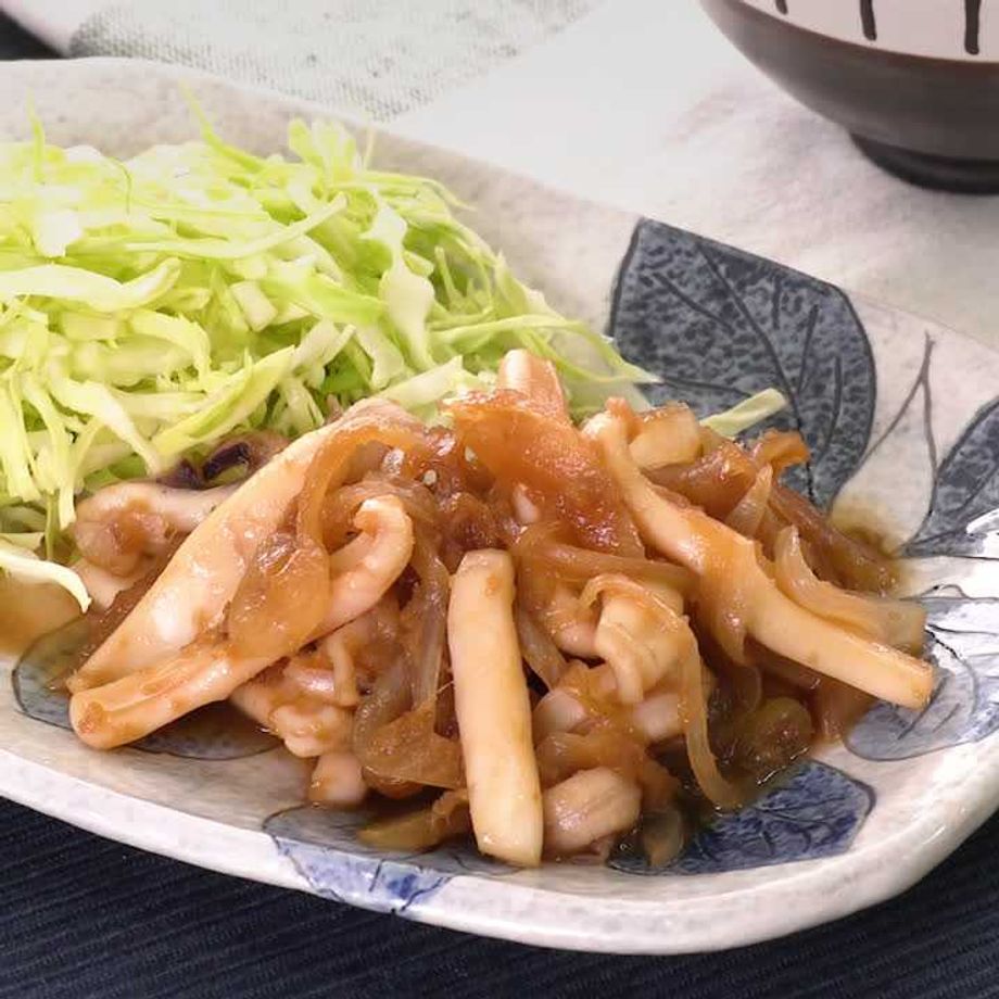 フライパンにサラダ油を入れて弱めの中火で熱し、玉ねぎを入れてしんなりするまで3分ほど炒める。アオリイカを加えて色が変わるまで炒め、☆、しょうがを加えて炒め合わせる。