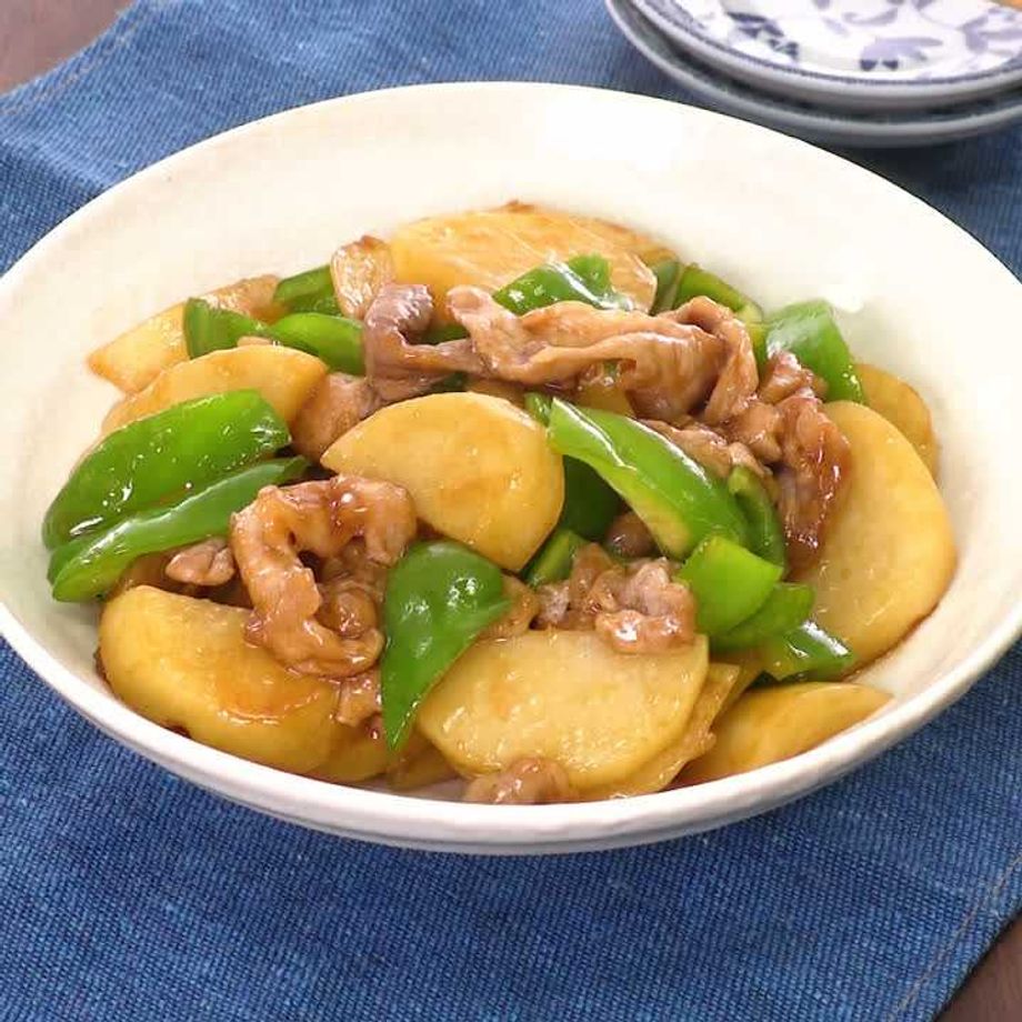3にじゃがいもを加えて2分程炒め、ピーマンを加えてさっと炒める。★を加えて炒め合わせる。