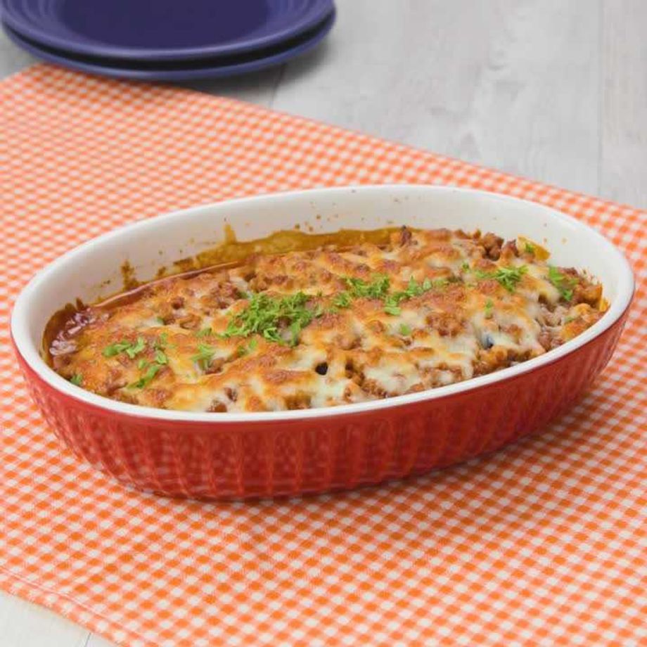 なすにミートソースの旨みがしっかり染みて、トロッとジューシー♪ミートソースに唐辛子を加えてピリ辛にしてもおいしく召し上がれます!