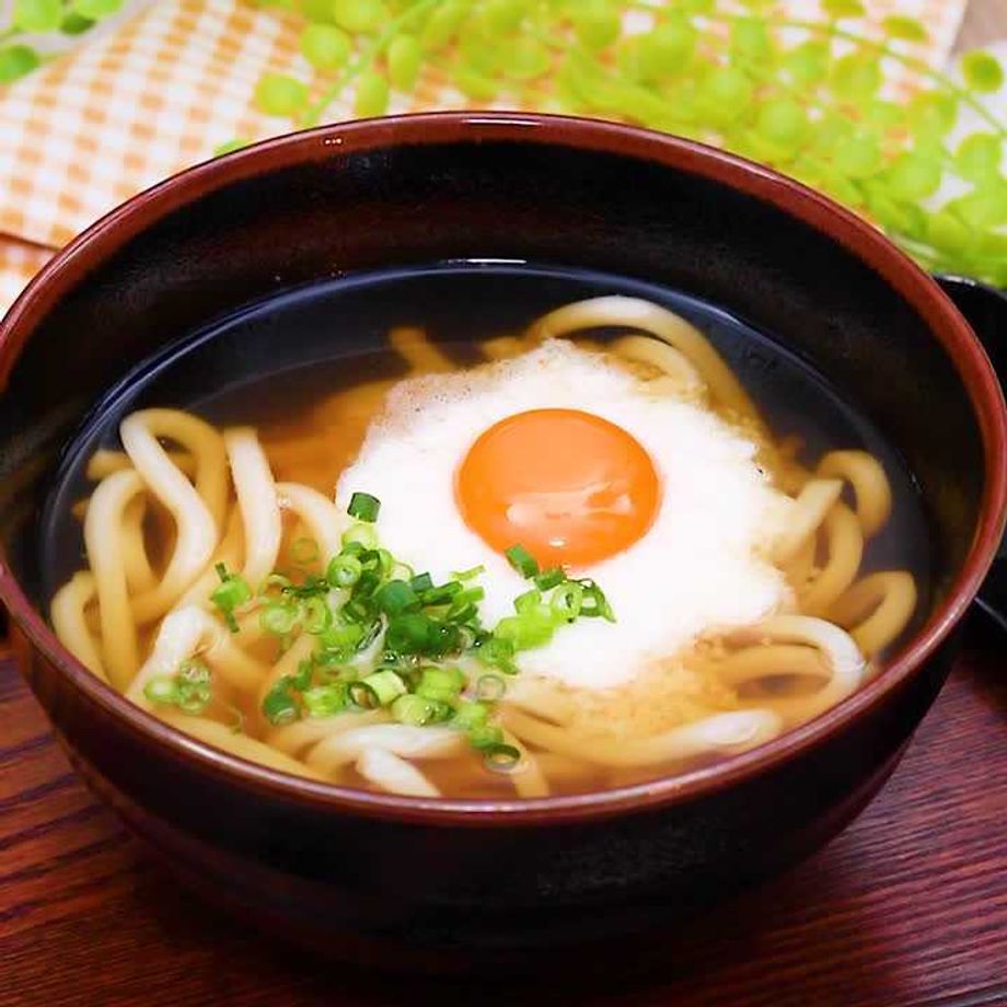 とろろと卵をのせたあたたかいうどんです。 ネバネバで"粘り強く"の験担ぎレシピ。 消化にもいいから夜食にもぴったり!