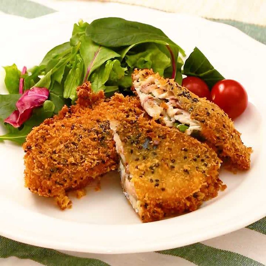 アジにチーズをサンドして、ボリュームあるアジフライに仕上げました!お好みでしょうゆをかけてもおいしいです♪