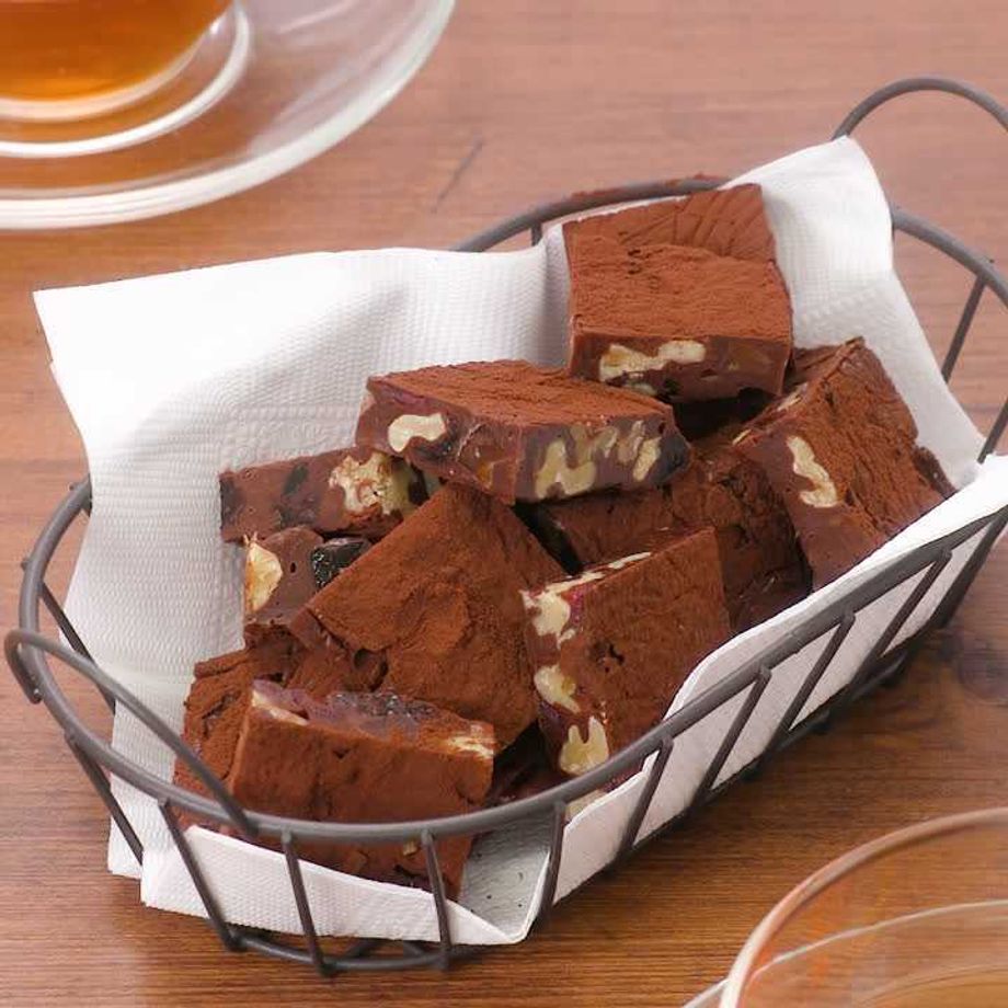 チョコレートは細かく刻む。くるみは手で粗く砕く。