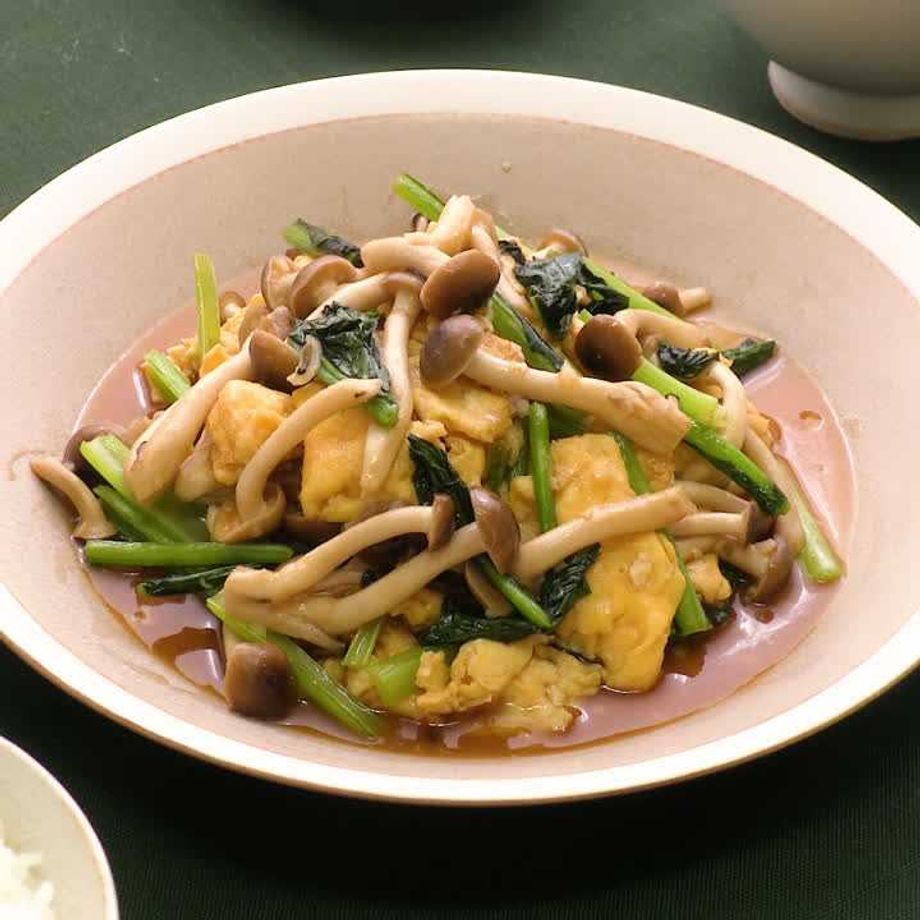 同じフライパンににんにくを入れて香りがたったら、しめじ、小松菜を加えてしんなりするまで中火で炒め、卵を戻し入れ、☆を加えて全体がからまるように炒める。