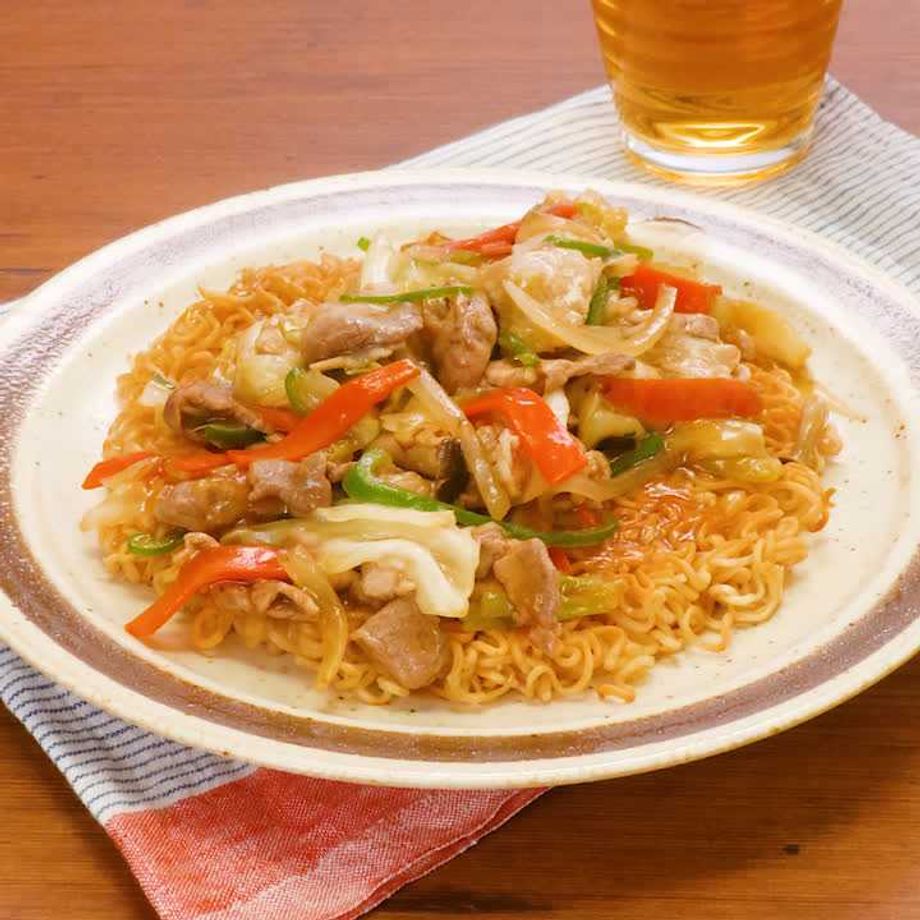 インスタントの袋ラーメンをあんかけ焼きそばにアレンジ!カット野菜を上手に活用すれば、包丁を一切使わず調理できます♪カリカリに焼いた麺に、野菜たっぷりのあんをとろっとかけたボリュームたっぷりの一品です。