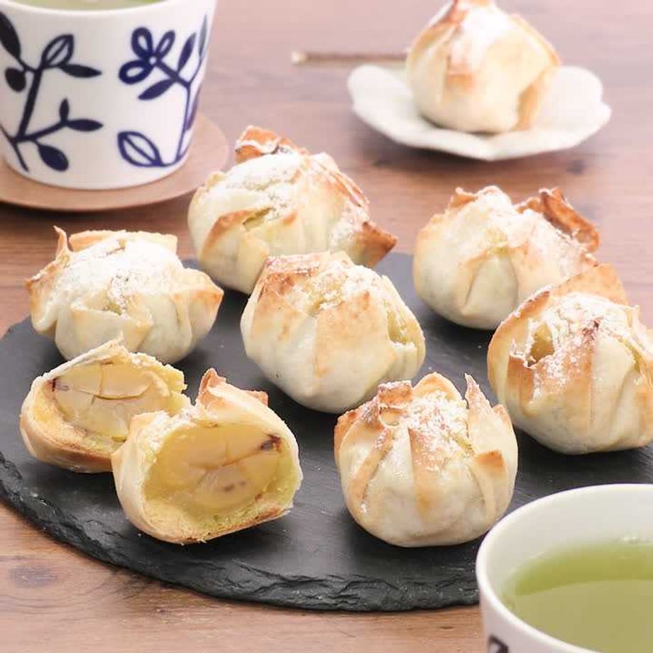 栗きんとんのアレンジレシピ!春巻きの皮に包んで焼き上げることで食べやすく、サクサクとした食感が楽しめます。