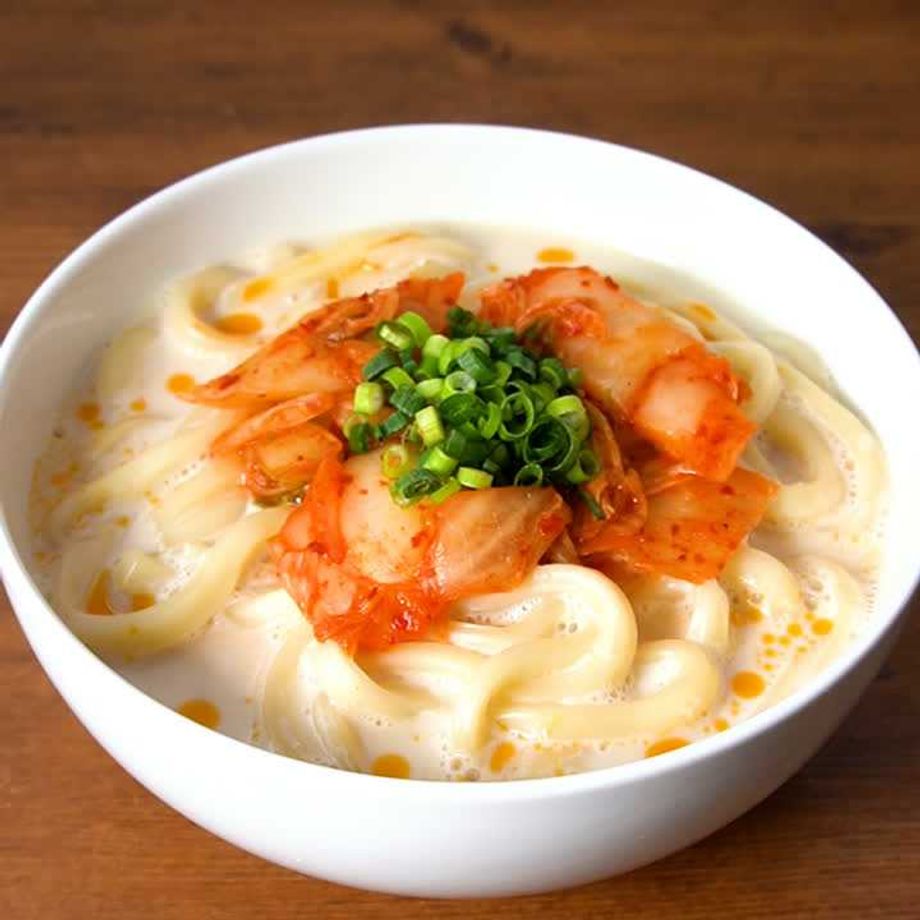 ピリッと辛いキムチとまろやかな豆乳の相性抜群!ほっと温まるシンプルながらも食べ応えのある一品です♪