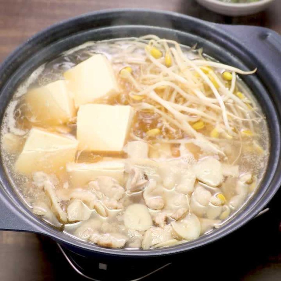 だし汁を加えて煮立ったら豆もやし、豆腐を加えてふたをする。豆もやしがしんなりするまで弱火で2〜3分ほど煮る。