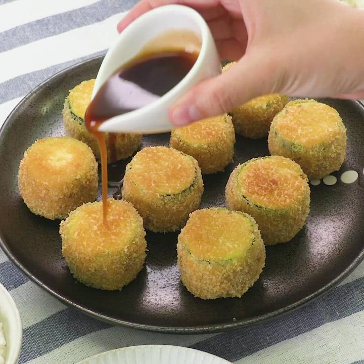 3をバッター液にくぐらせ、パン粉をまぶす。