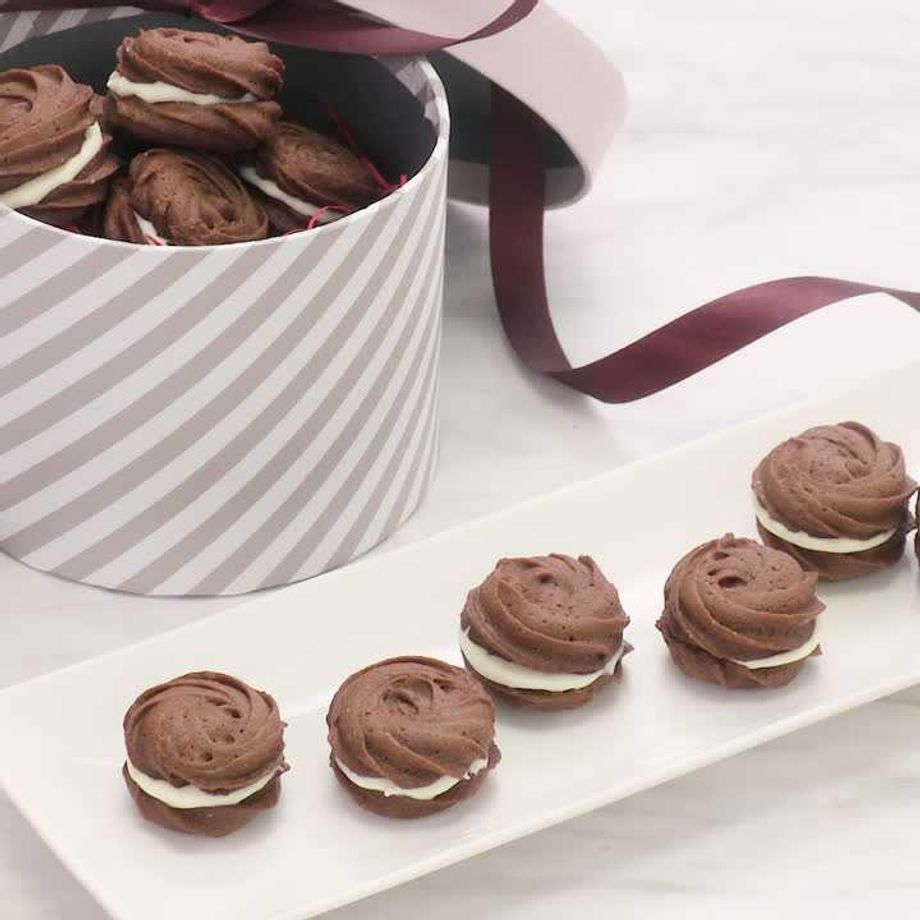絞り出しクッキーにチョコレートをはさんだ見た目にも可愛らしいクッキー!バレンタインなどにおすすめです♪