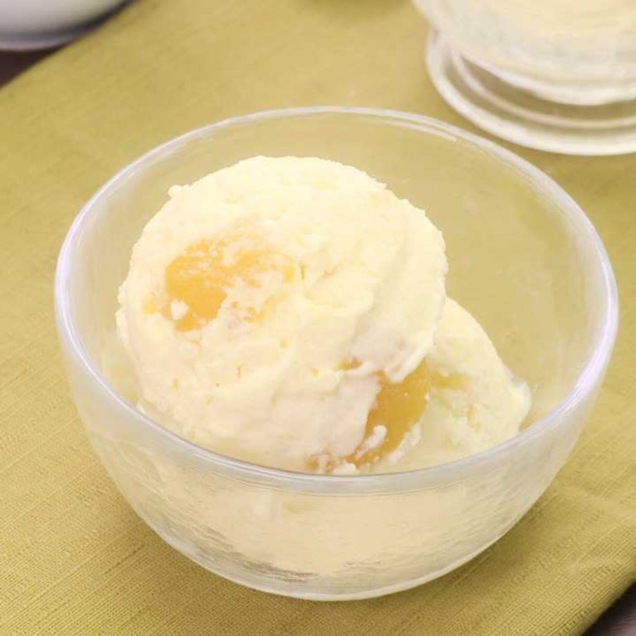 冷凍庫で1時間冷やし、スプーンで空気を含ませながら全体を一度混ぜる。ラップをし、さらに固まるまで冷凍庫で2時間以上冷やす。