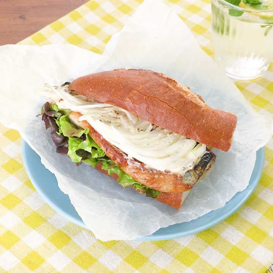 レモン汁がさっぱりと良いアクセント♪バゲットにサバをはさんで豪華にかぶりつきましょう!お好みのパンでぜひお試しください。