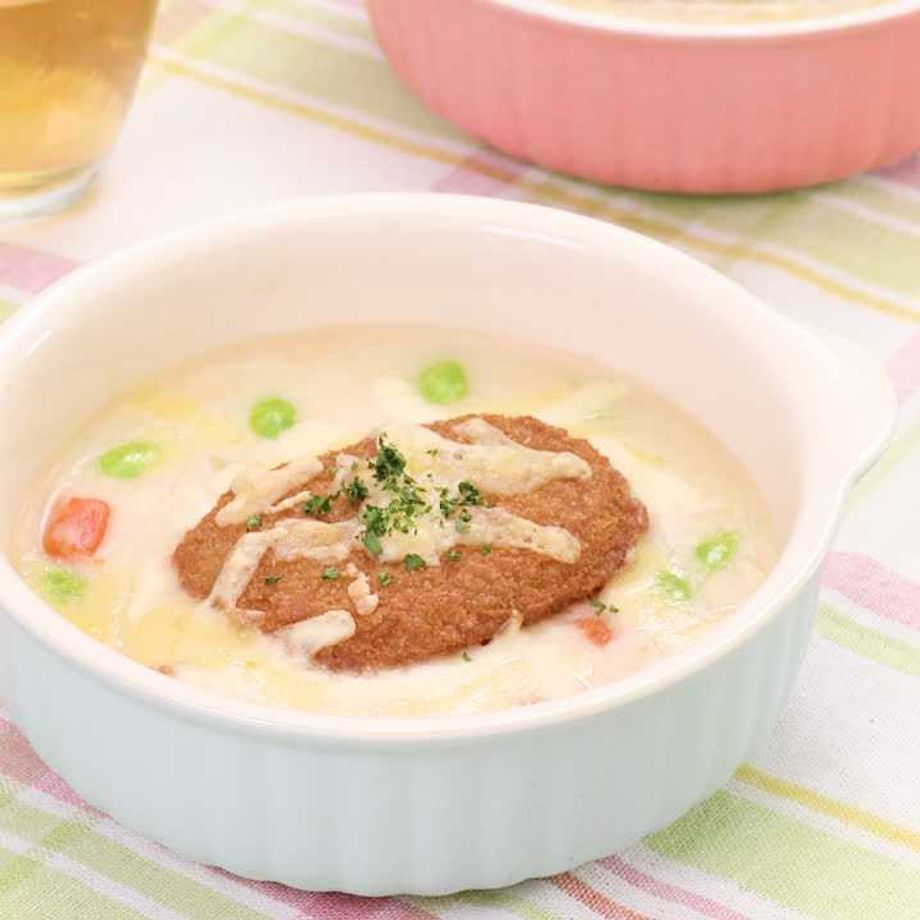 - シチューがいつもあまるので 何かアレンジ方法を探しているときに見つけました。 コロッケはお惣菜で買ってきて 枝豆の代わりにミックスベジタブル入れました。 簡単なのにボリュームもありとても美味しかったです。